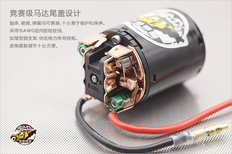 本款540有刷大扭力马达适合攀爬车、大脚、拖头、自卸车、军卡模型等使用,前后各有一颗滚珠轴承、耐高温强磁、无氧铜漆包线、进口矽钢片,发热小功率大效率高,高效有力省电。本电机十易于维护,轴承、碳刷均可更换,进角可调节,无论是一般玩耍还是入门进阶,都非常适合。马达在设计、用料、做工、性能方面都有不错的表现,花2位数的代价,享受3位数马达的性能!太超值了!是玩家们的福音!