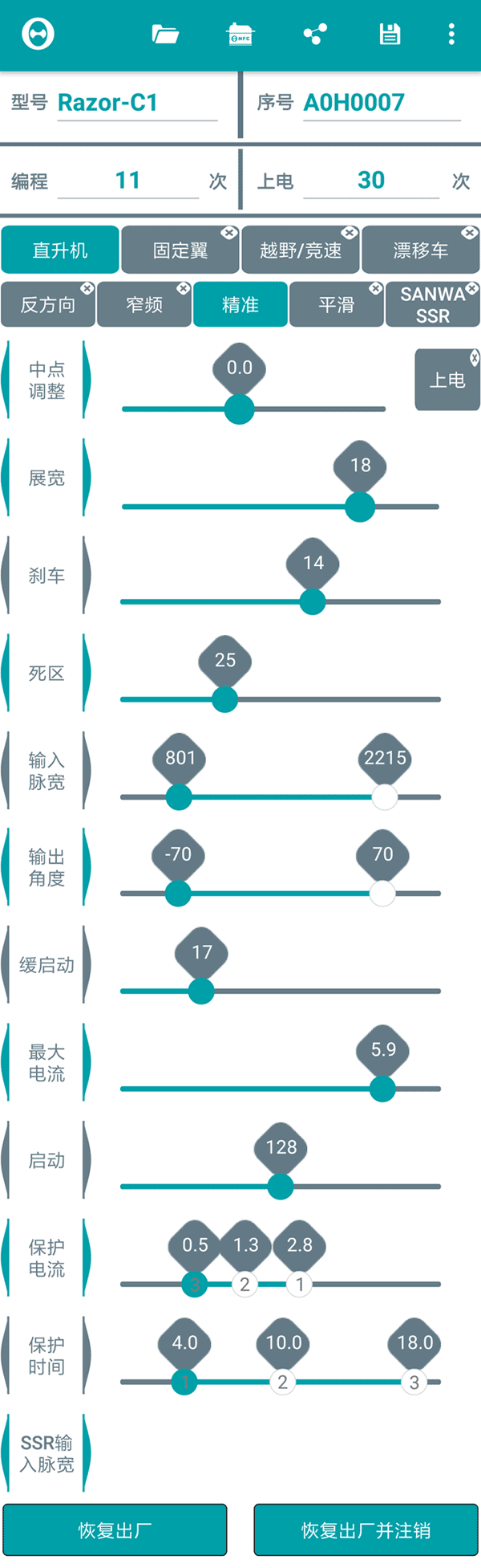 无线调参功能目前仅支持具有NFC功能的安卓手机