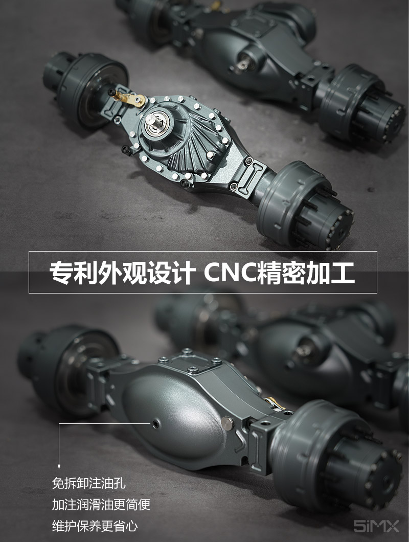镭速1/14卡车轮边减速转向驱动贯通桥CNC金属车桥(Q-9029)