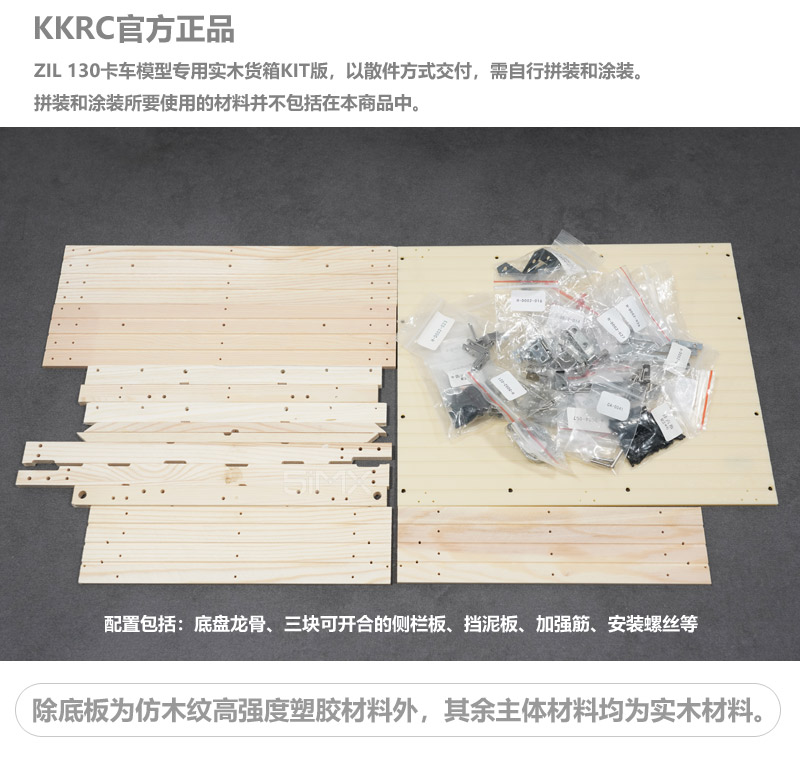 机器蜻蜓 - 卡车 > 整车 > KKRC 1/12吉尔 ZIL 130Ⅱ卡车模型 实木货箱货斗后斗 散件