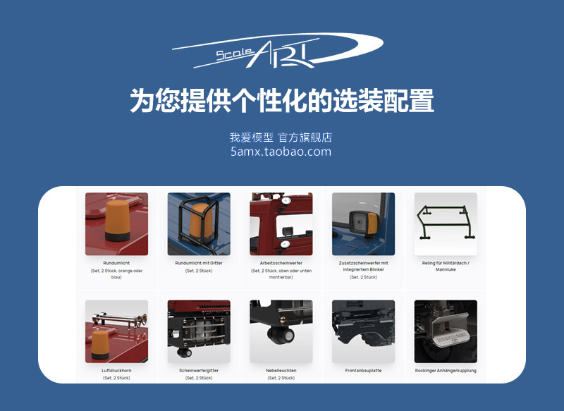定制:德国ScaleART 1/14.5比例UNIMOG乌尼莫克模型 选装配置