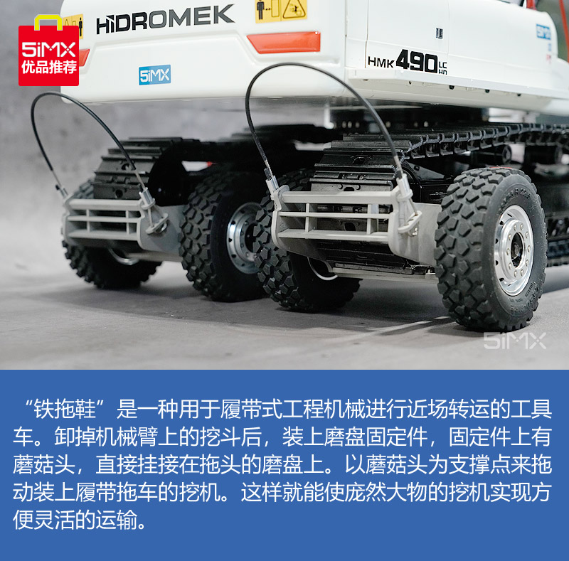 内置真正的微型液压系统,金属液压管路,仿真金属链条,CNC金属底盘和车架,驱动轮有差速器,大转向角度,具备一流的性能和丰富的细节。