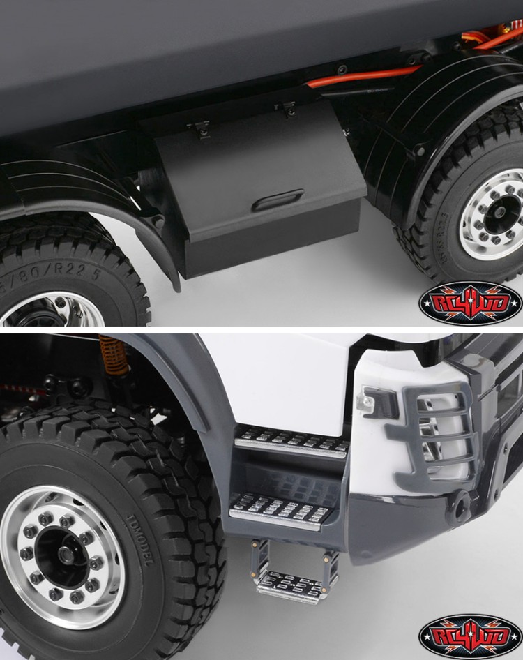 没有什么能比第一眼看到“她”更让人激动的了!Volvo 8x8是一台为“机械控”设计高品质遥控车辆模型!它的结构和真车相似,主体结构用料为全金属材料,拥有如真车一样的大梁、减震和传动装置,甚至连自卸装置也采用了5级油缸液压举升器,理论推力可达400kg,耐压5MPA。Volvo 8x8为8轮全驱结构,采用仿真减速桥外观设计,含有差速器和差速锁,并且差速锁是可以遥控的,提升了车辆的通过性。“油箱”采用阳极氧化亮银处理,内部存放了液压油,是真正有功能的装置,并非一般装饰零件,以假乱真的造型使这台车更加逼真!