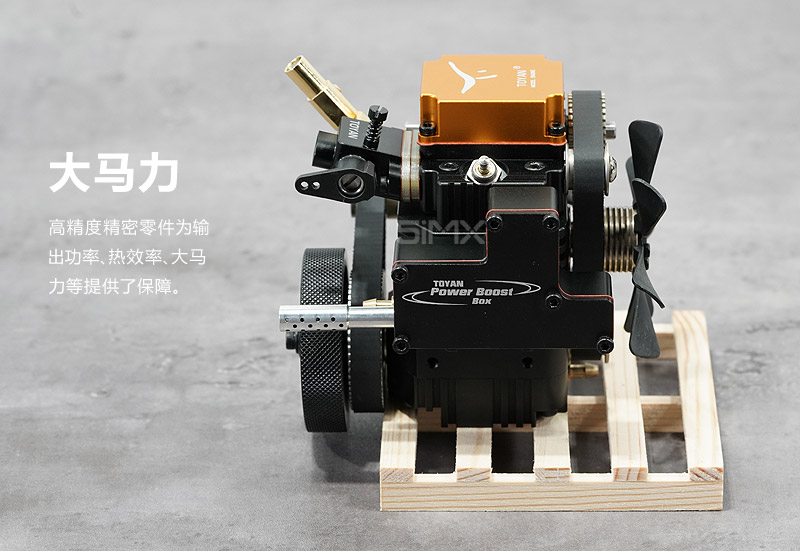 发动机为单缸4冲程,排气量3.5cc,转速2500-12500RPM。高精度正时皮带传动,运行平稳安静;燃料为混合甲醇( 25%-35%甲醇硝基专用油 ),发动机为7075航空铝合金材质,发动机爱好者喜爱的收藏品。该发动机需要配套的油箱、油管、启动电调等配件才可启动,可用于改装模型越野车、大脚车等,或配套相应配件进行启动等。